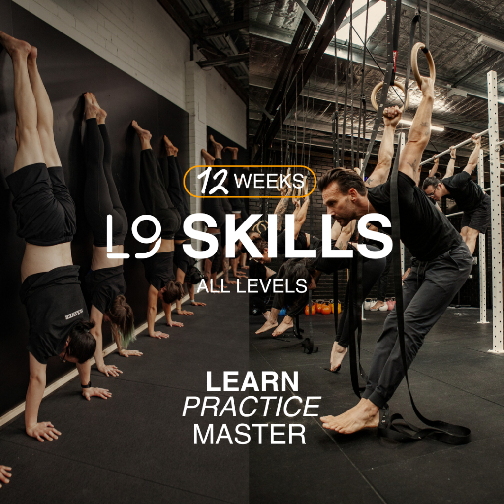 L9 Skills is all about learning calisthenics and handstands, developing strength, coordination, and body control. Designed for all levels, it works in tandem with the L9 Program. Over the year, we systematically break down our training into 2 week mini-programs to develop the handstand, muscle ups, levers, flags and more.